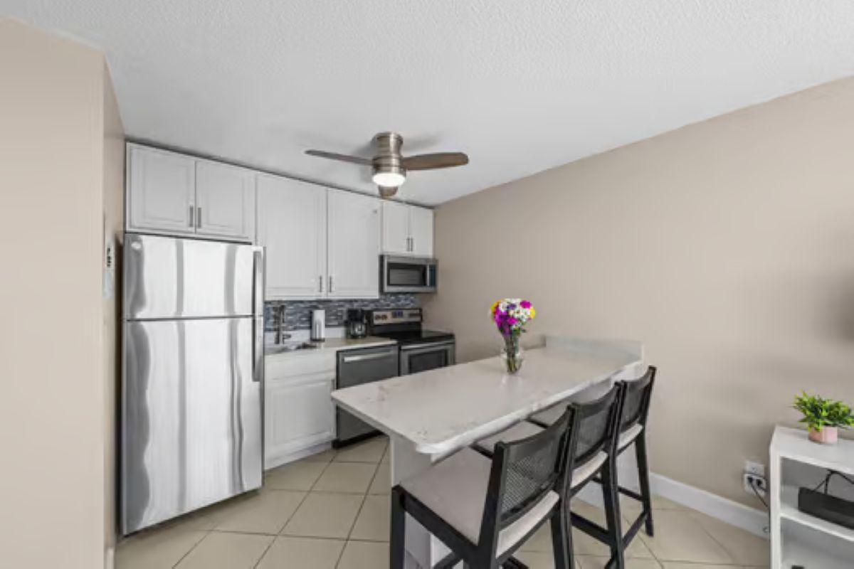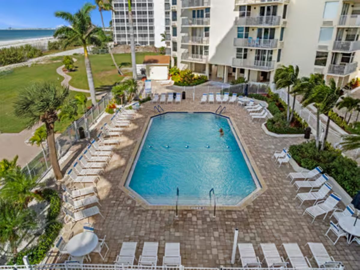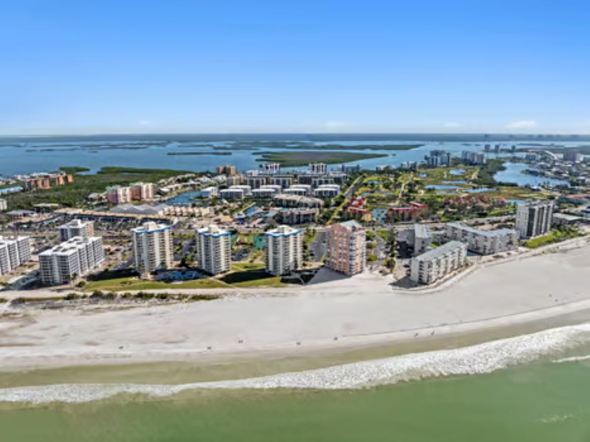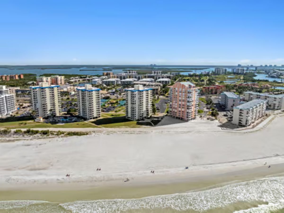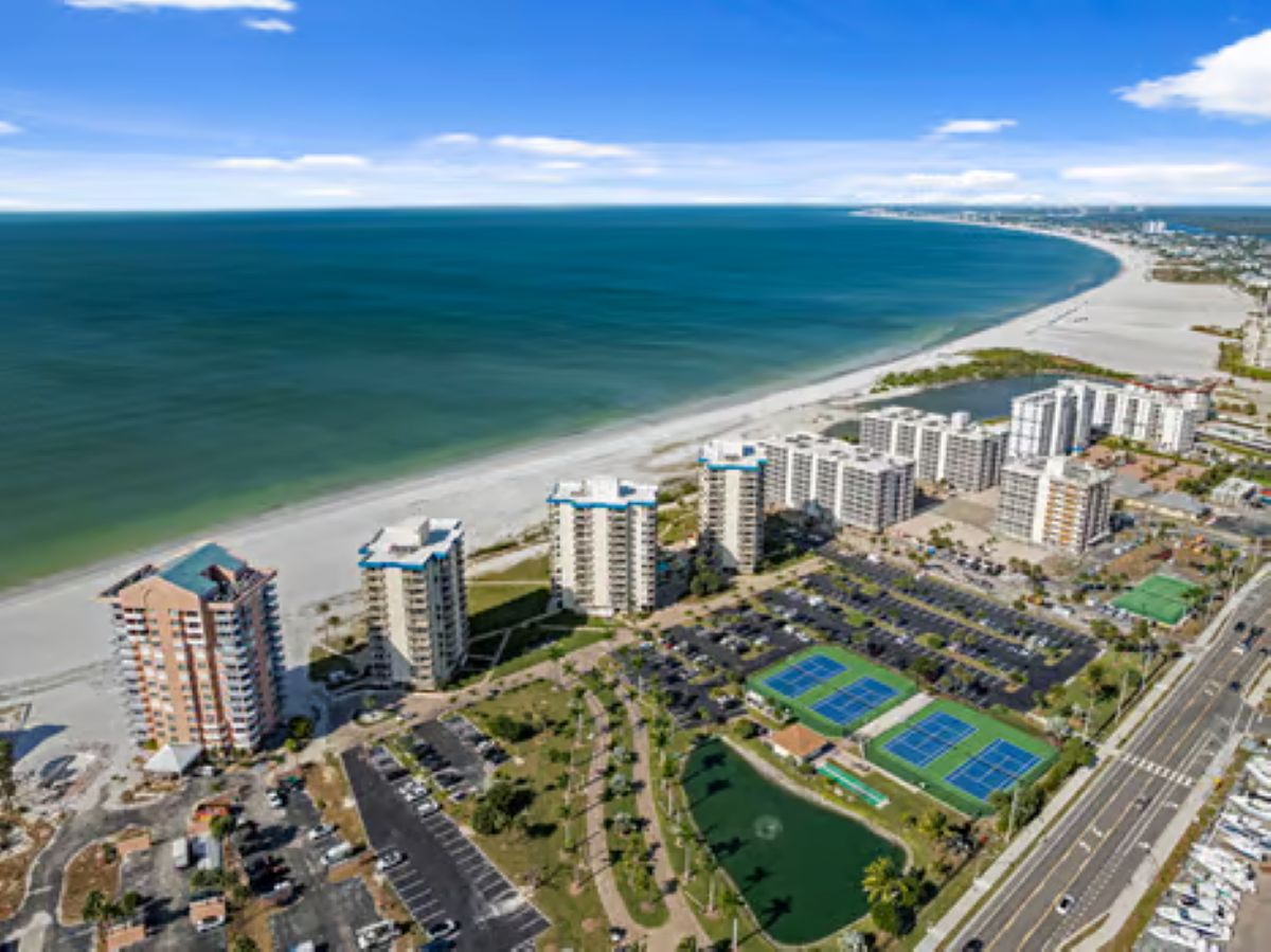 Estero Beach and Tennis Club 1002C is a one bedroom, one bath condo on the 10th floor located at the south end of the island and is only steps away from the white sand beach. It accommodates 2 people. The kitchen is fully stocked for you to prepare your meals. There is a small island for you to enjoy you meals at or you can enjoy them out on the balcony.