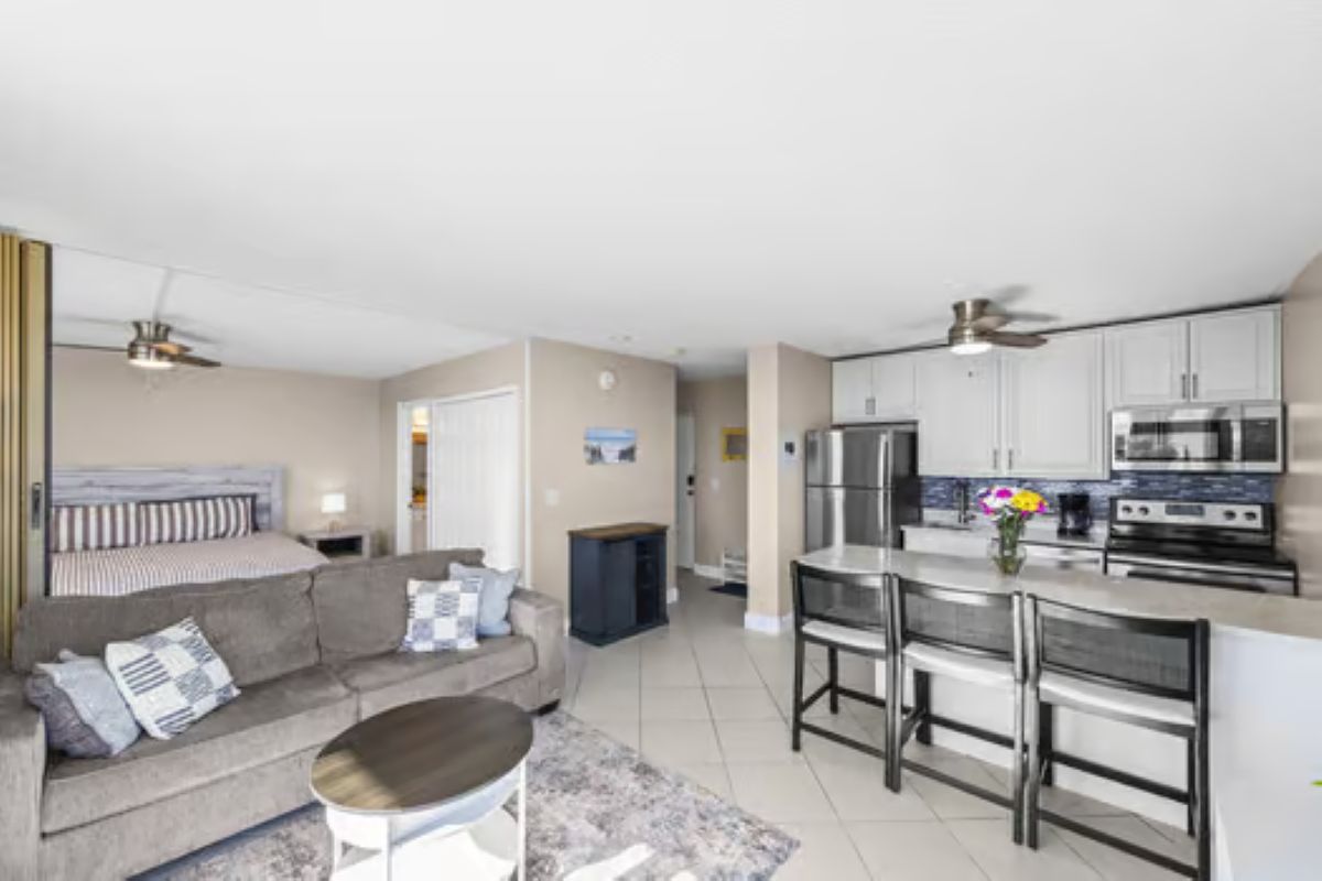 This unit has a keyless entry so you can head right to the unit at check-in time. A code will be emailed to you a 5 days before arrival. Per condo association rules, all guests upon arrival to the complex must sign in with the onsite office at EBT to complete registration forms and receive their parking pass. It is located in the B building.